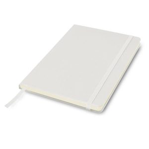 Disponível numa ampla gama de cores, inclui 80 folhas pautadas. Com fecho elástico e marca-páginas de tecido a condizer. Distintivo RPET na parte traseira.