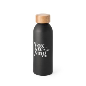Garrafa Queta em alumínio com tampa de bambu e acabamento mate com glitter. Capacidade até 550ml.