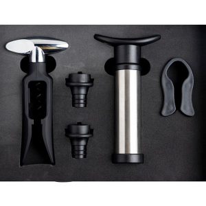 Set de Vinho Winelux com Bomba e Rolhas de Vácuo, saca-rolhas e corta cápsulas.