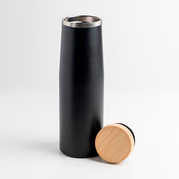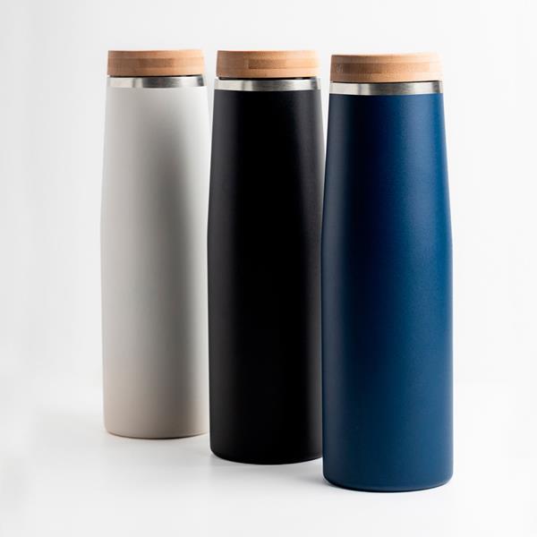 Garrafa Bambottle com parede dupla em aço inoxidável de 550ml, mantém suas bebidas frias por até 12 horas e quentes por até 6 horas. Seu design contemporâneo alia estilo e consciência ambiental: a lacagem garante resistência, durabilidade e um acabamento sofisticado, enquanto a tampa em bambu natural reforça o compromisso ecológico.  Acompanha uma embalagem individual em caixa kraft, perfeita para o dia a dia ou como brinde.