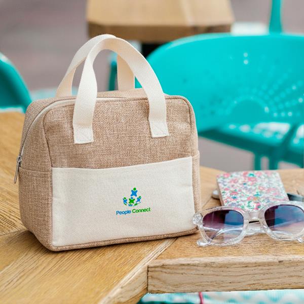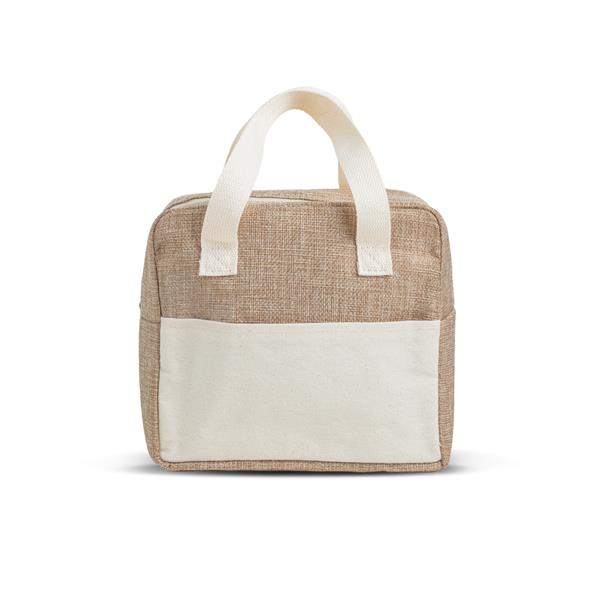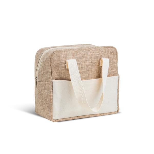 Bolsa térmica Natura Cool em poliéster e algodão, dimensões 21,5x13x20cm. Ideal para manter alimentos e bebidas na temperatura certa. Possui interior com forro térmico em alumínio para melhor isolamento, alças resistentes e design natural em tons neutros. Perfeita para uso diário, piqueniques ou levar o almoço ao trabalho.
