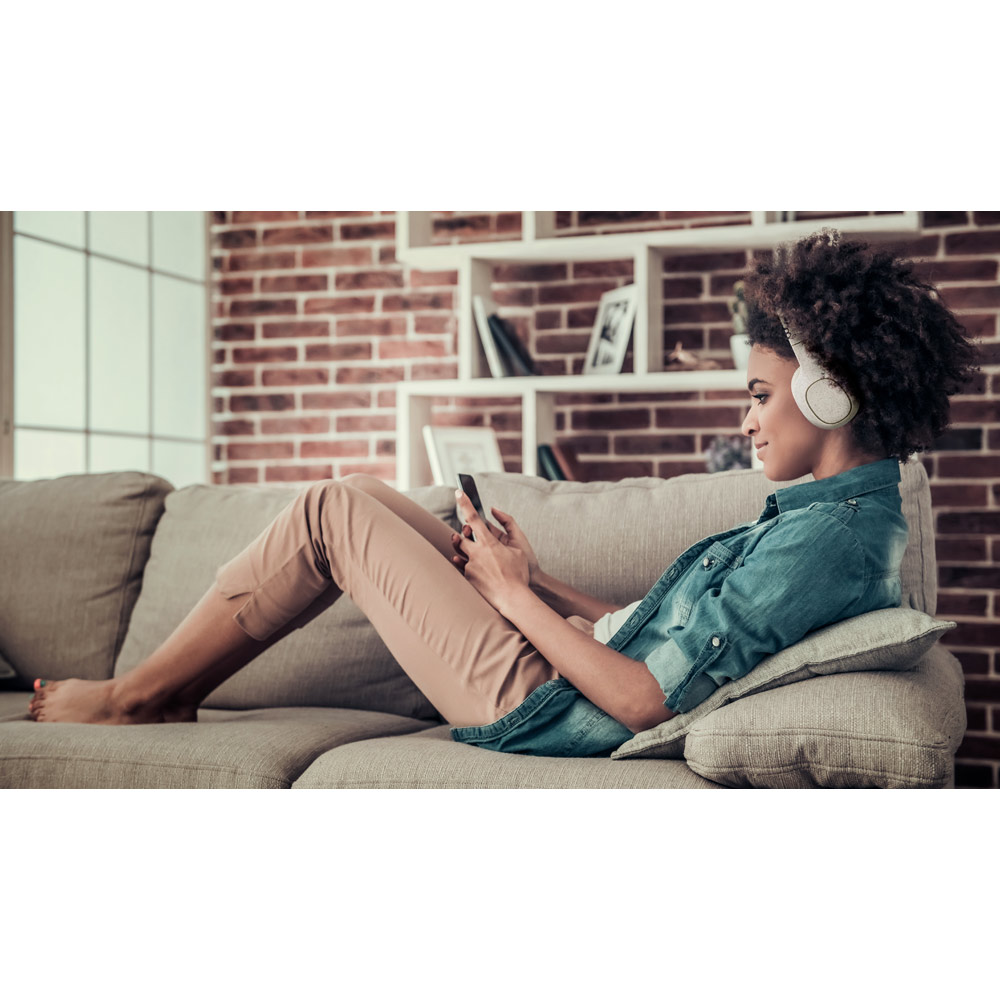 Auscultadores Feynman Dobráveis sem fios em fibra de palha de trigo e ABS. Funcionam com transmissão BT v5.0, têm um leitor de cartões micro SD e uma entrada AUX jack 3,5 mm, que permite utilizar os auscultadores através de cabo de áudio, mesmo quando a bateria está descarregada. A bateria tem uma capacidade de 400 mAh que permite uma autonomia de, aproximadamente, 4h. O microfone incorporado e os botões dos auscultadores permitem atender chamadas, controlar o volume e a playlist do dispositivo móvel. Inclui um cabo de carregamento USB e um de áudio 3,5 mm. Fornecido em bolsa em caixa de oferta em papel kraft. Auscultadores