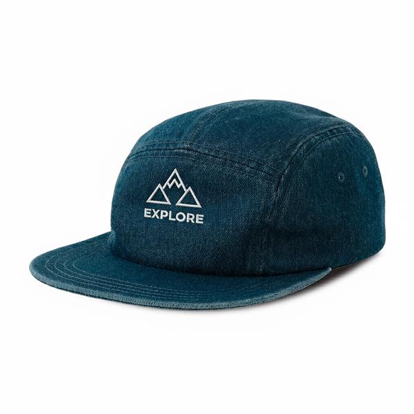 Boné Ruby estilo camper em 50% algodão e 50% algodão reciclado, não estruturado, com 5 painéis, pala reta e fecho com fivela de metal. Feito de algodão reciclado, tingido com a tecnologia DyStar® Indigo, que reduz o consumo de água, energia e produtos químicos em comparação com os métodos tradicionais de tingimento de denim. A sua construção em 5 painéis e costura tom sobre tom aumentam o espaço disponível para personalização. Acabamento com faixa de algodão orgânico, pala flexível ReTraze® reciclada feita de redes de pesca descartadas.