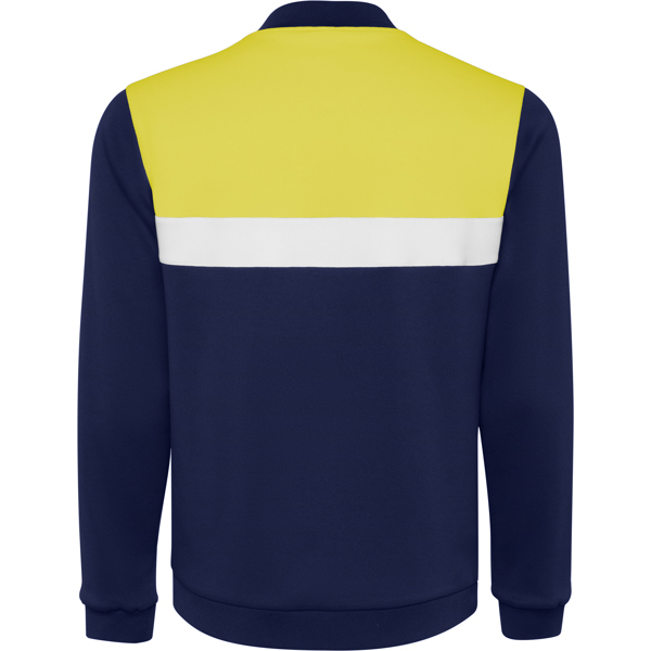 Casaco Desportivo Leros com fecho de correr frontal. Bolsos laterais com fecho de correr. Gola, punhos e bainha em canelado 1×1. Peça principal assimétrica no lado esquerdo do peito, especialmente concebida para bordados. Pode ser combinado com as calças RHODES. Tamanhos de Adulto e Criança.
