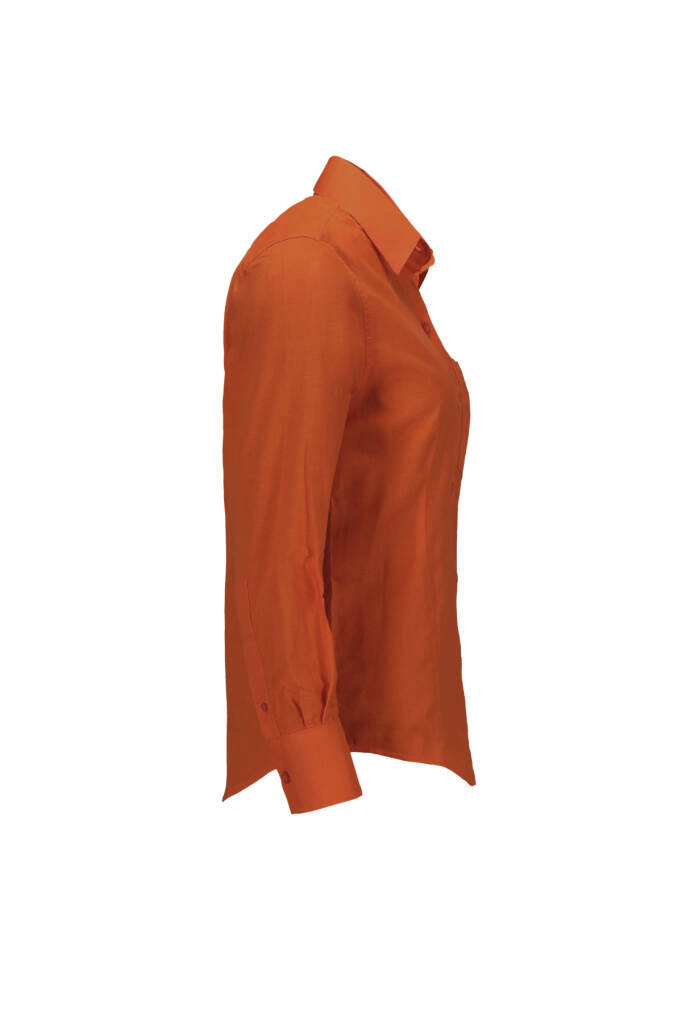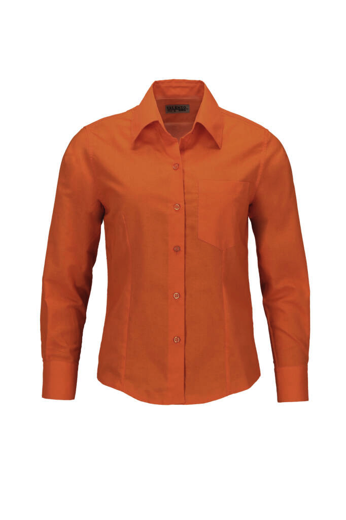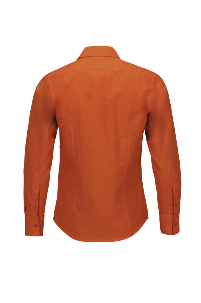 Camisa Ceremony para mulher, manga comprida e bolso. Confecionada em tecido de 200 fios Oxford com fio tingido de algodão com poliéster para maior durabilidade e resistência.