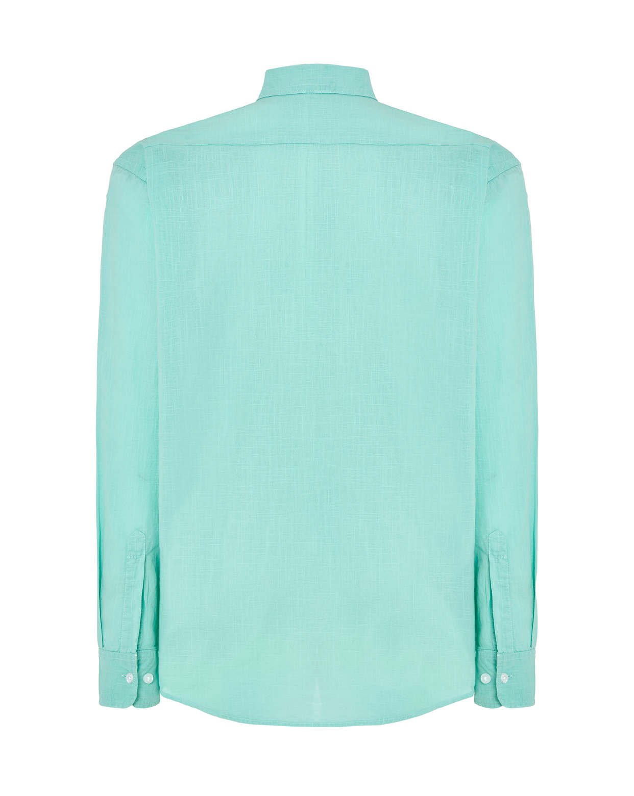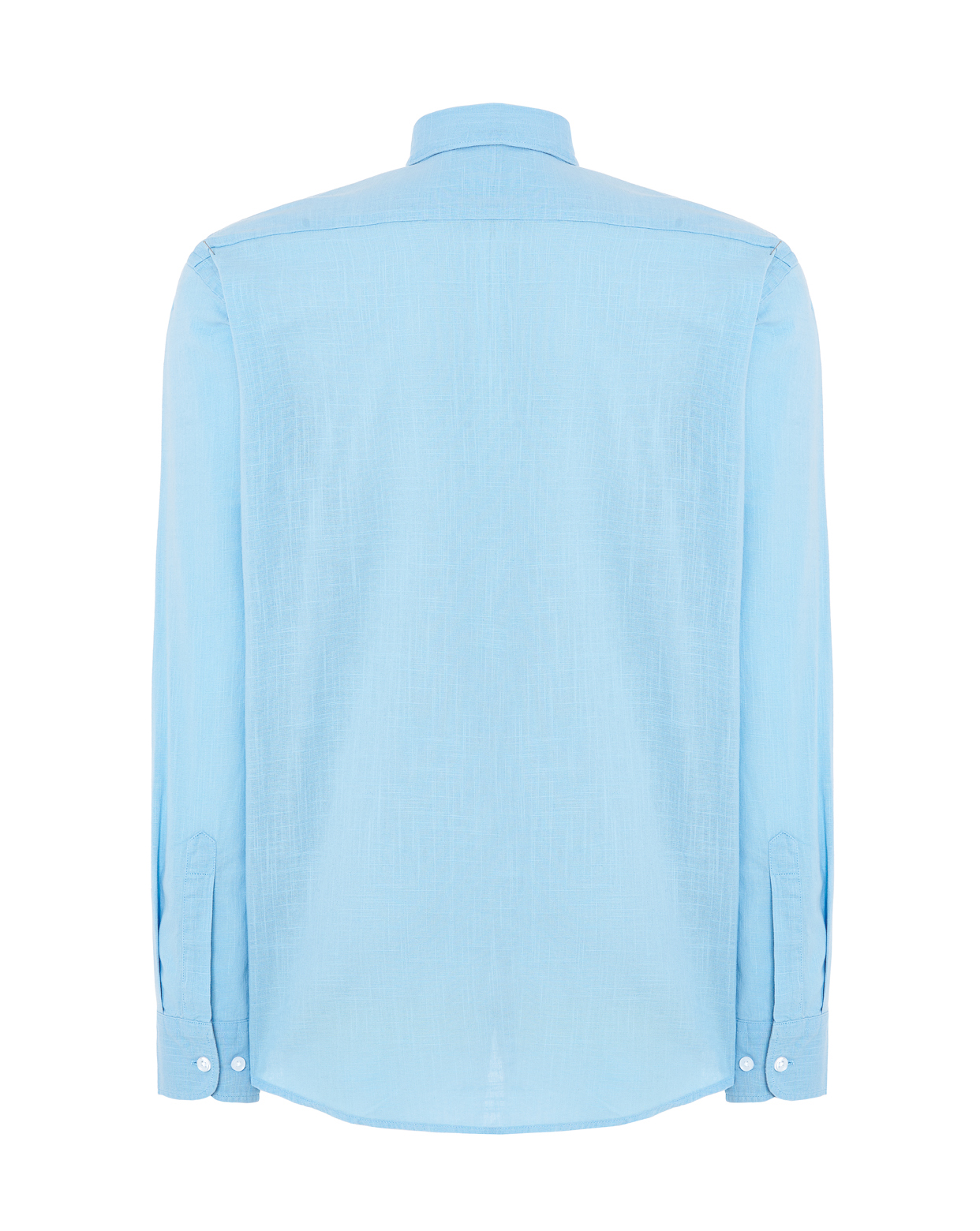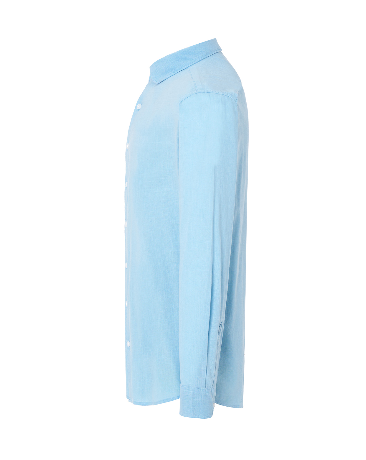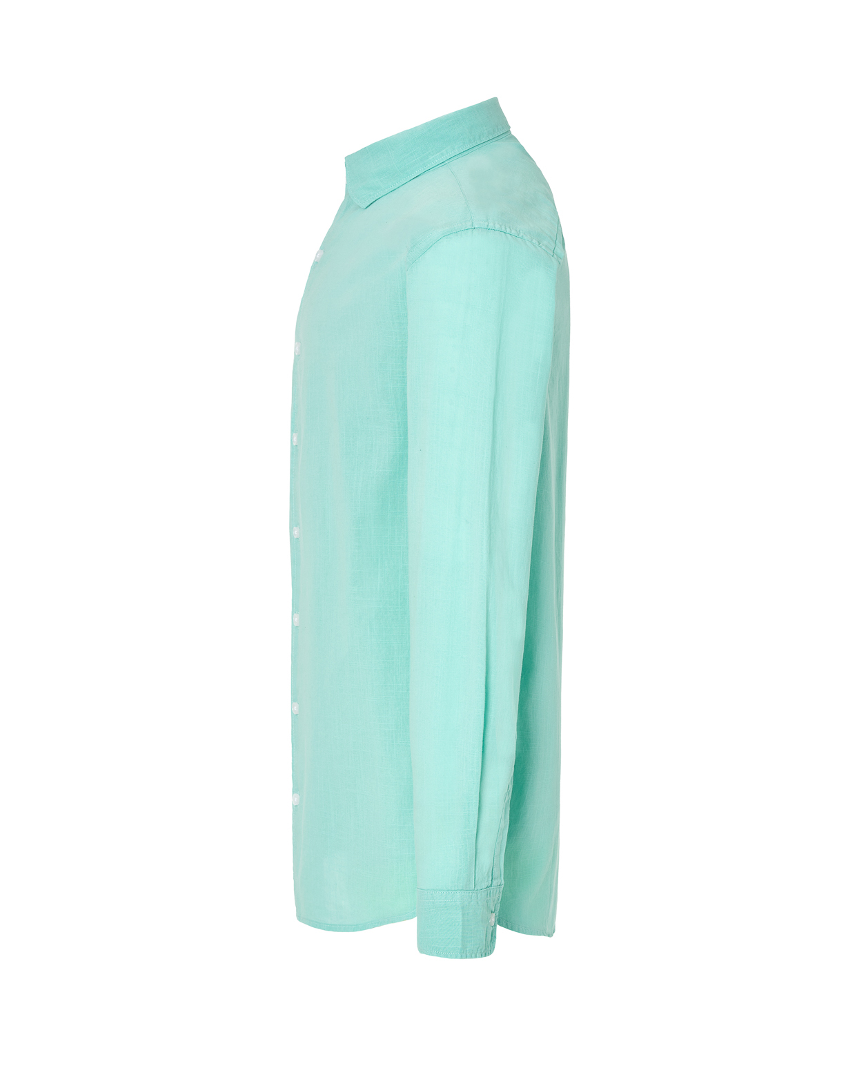 Camisa Tulum de Manga Comprida, sem botões na gola, carcela de manga comprida com botão e prega. punhos com dois botões. parte inferior curvada 100% Algodão slub