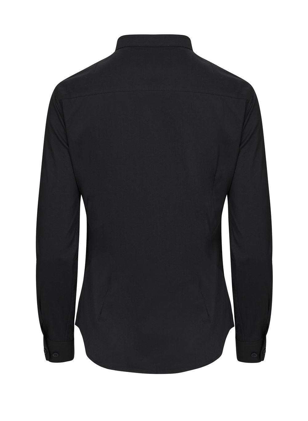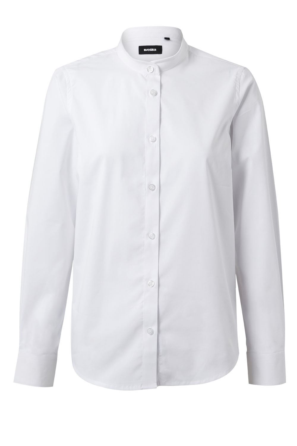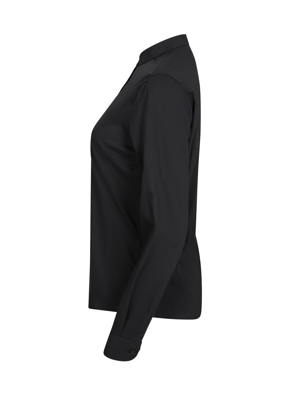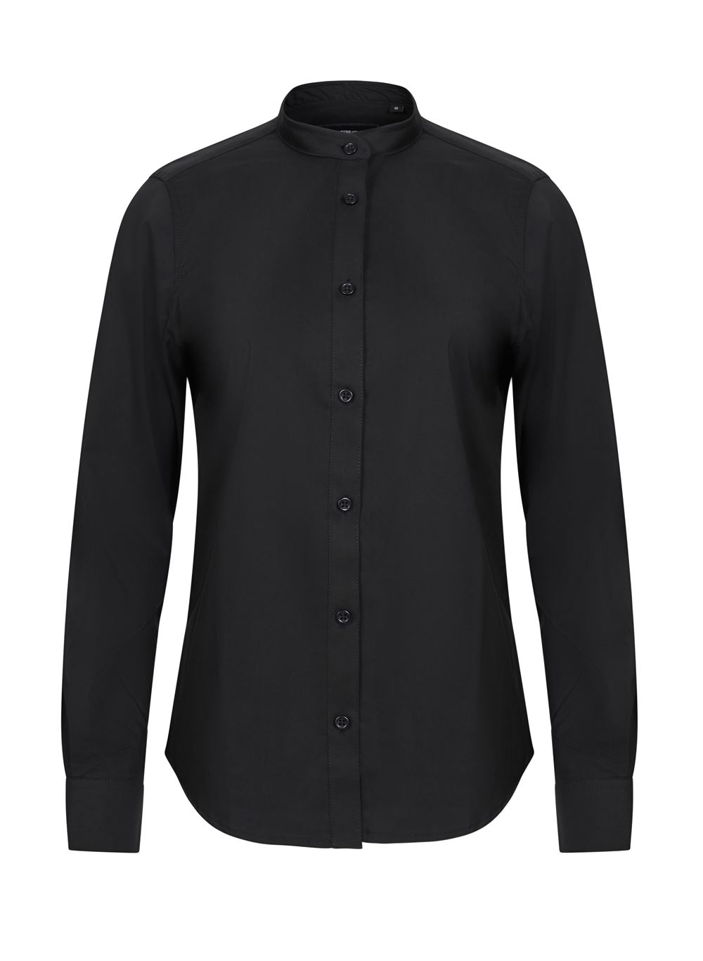 Camisa Gola Tira Stretch Manga Comprida de Mulher. Fecho central com carcela inglesa, Gola tira Cabeção traseiro Pinças no peito e nas costas para ajustar Punho arredondado com fecho de botão e Botão extra. Tecido Popelina stretch. 67% algodão – 29% poliéster – 4% elastano / 115 g/m2