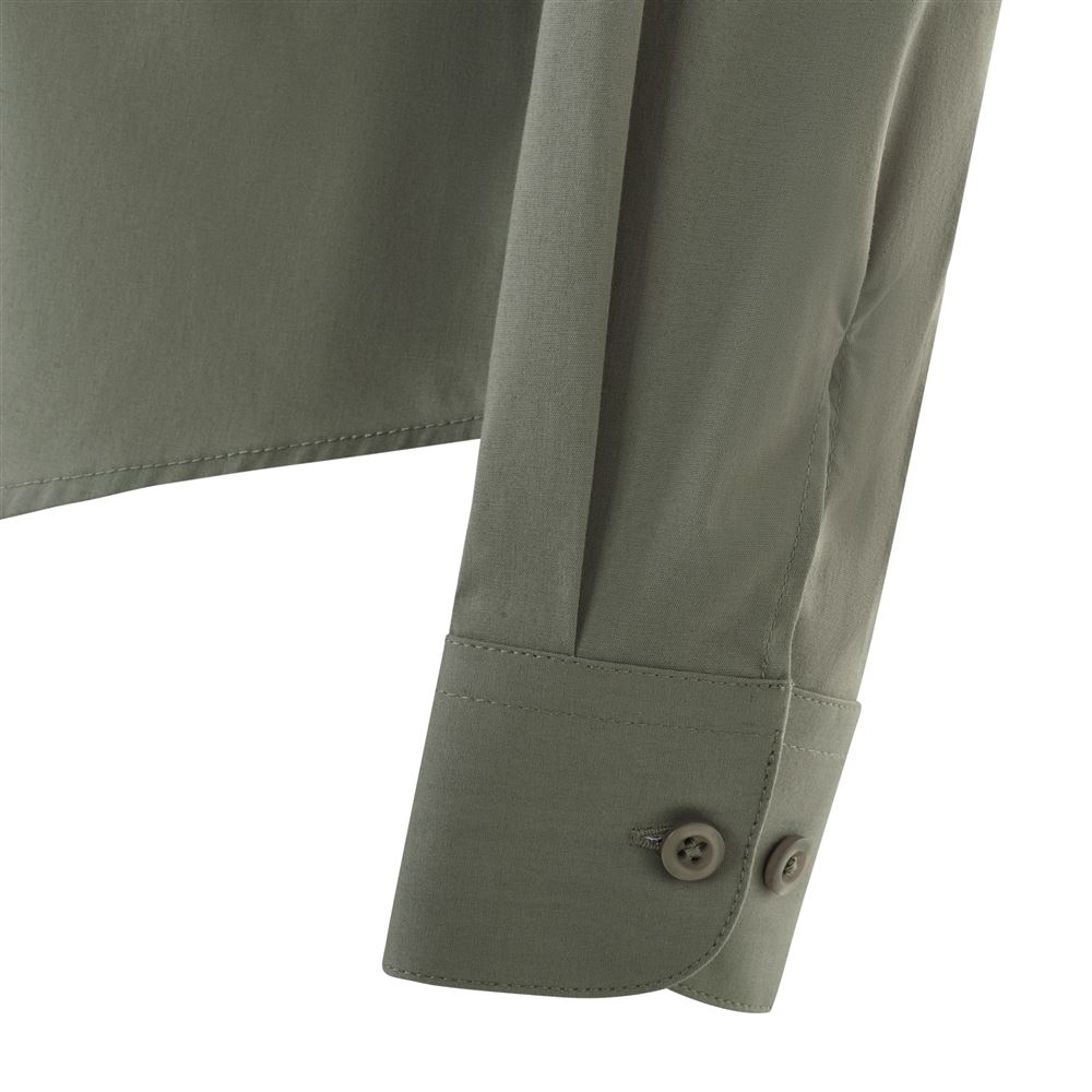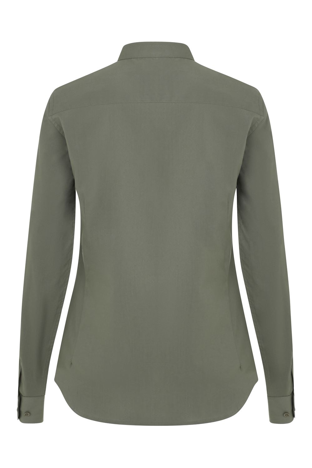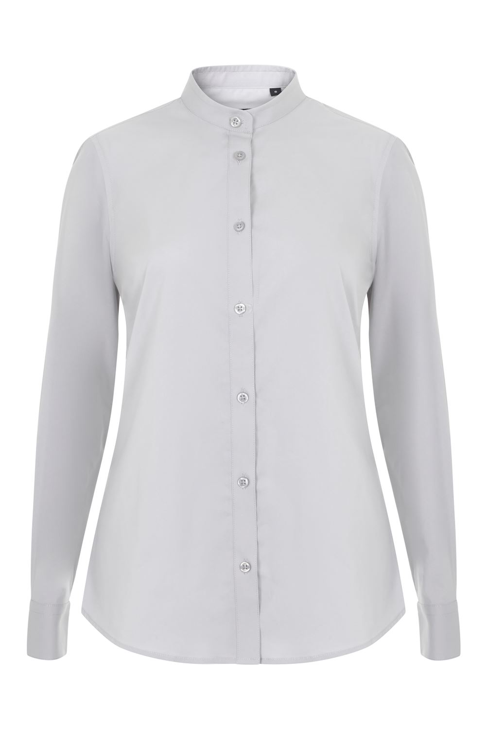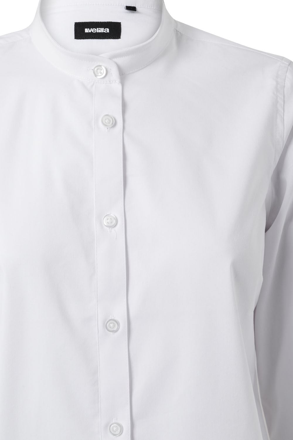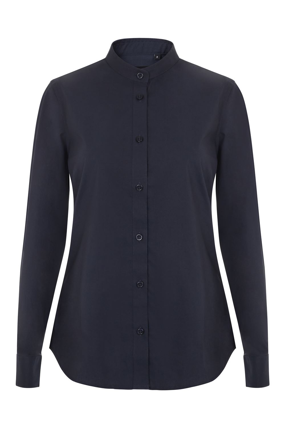 Camisa Gola Tira Stretch Manga Comprida de Mulher. Fecho central com carcela inglesa, Gola tira Cabeção traseiro Pinças no peito e nas costas para ajustar Punho arredondado com fecho de botão e Botão extra. Tecido Popelina stretch. 67% algodão – 29% poliéster – 4% elastano / 115 g/m2