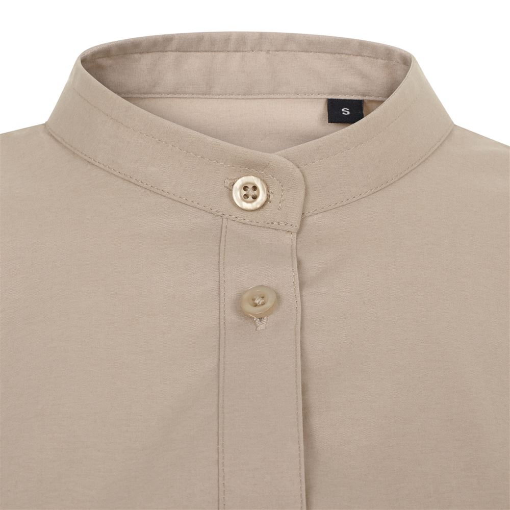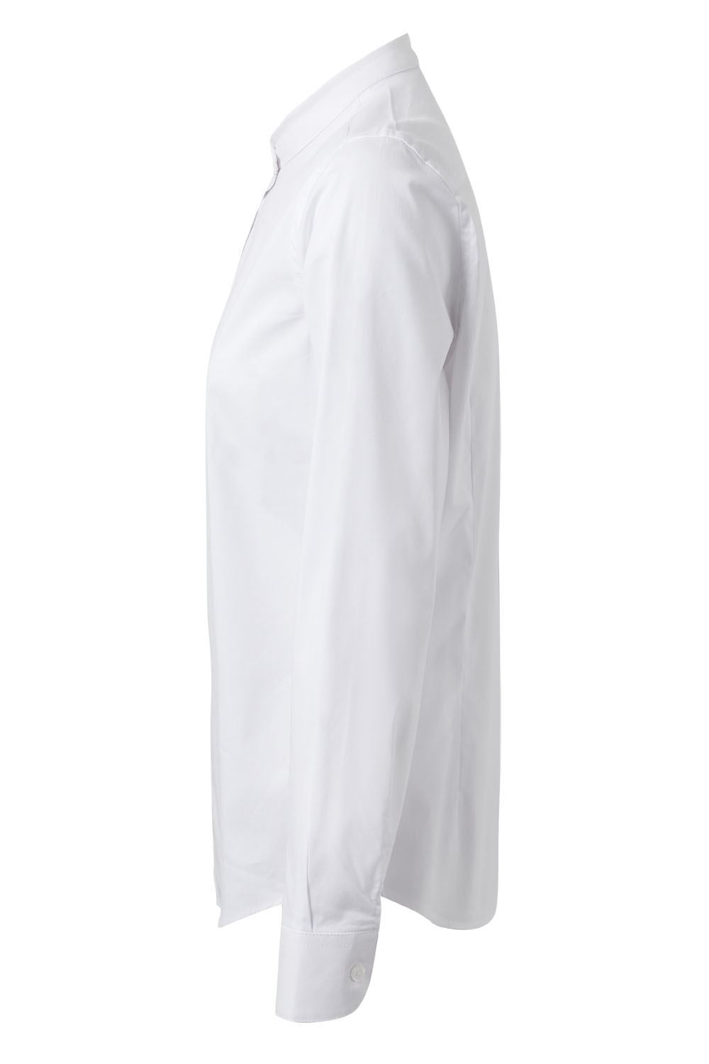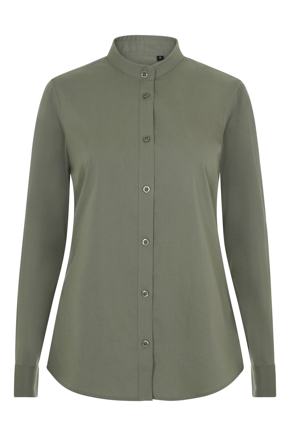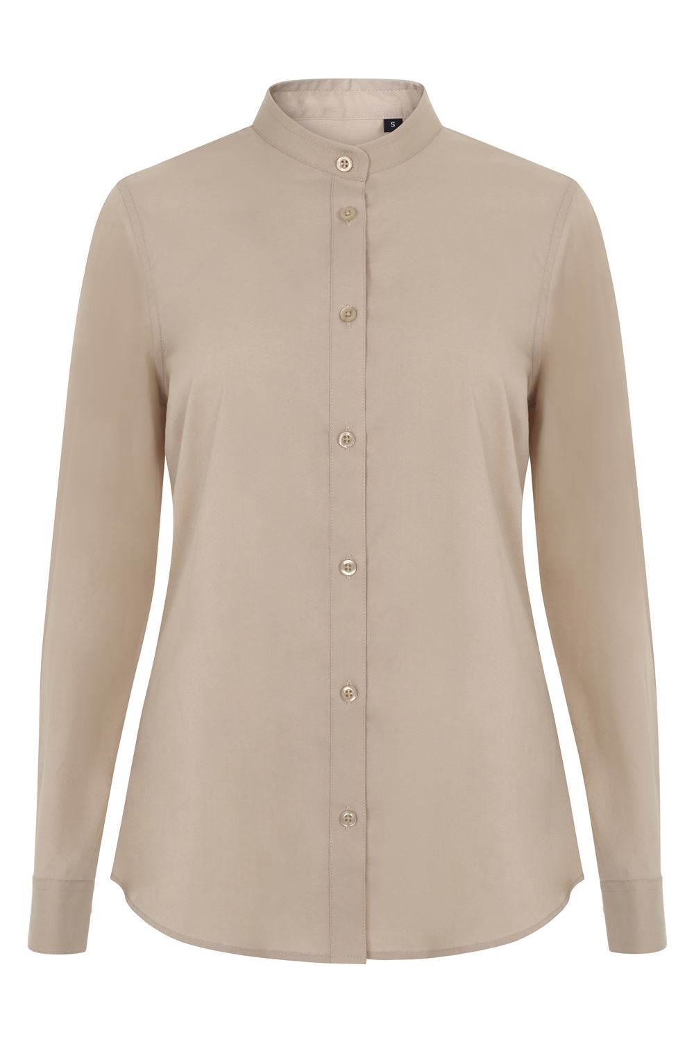Camisa Gola Tira Stretch Manga Comprida de Mulher. Fecho central com carcela inglesa, Gola tira Cabeção traseiro Pinças no peito e nas costas para ajustar Punho arredondado com fecho de botão e Botão extra. Tecido Popelina stretch. 67% algodão – 29% poliéster – 4% elastano / 115 g/m2