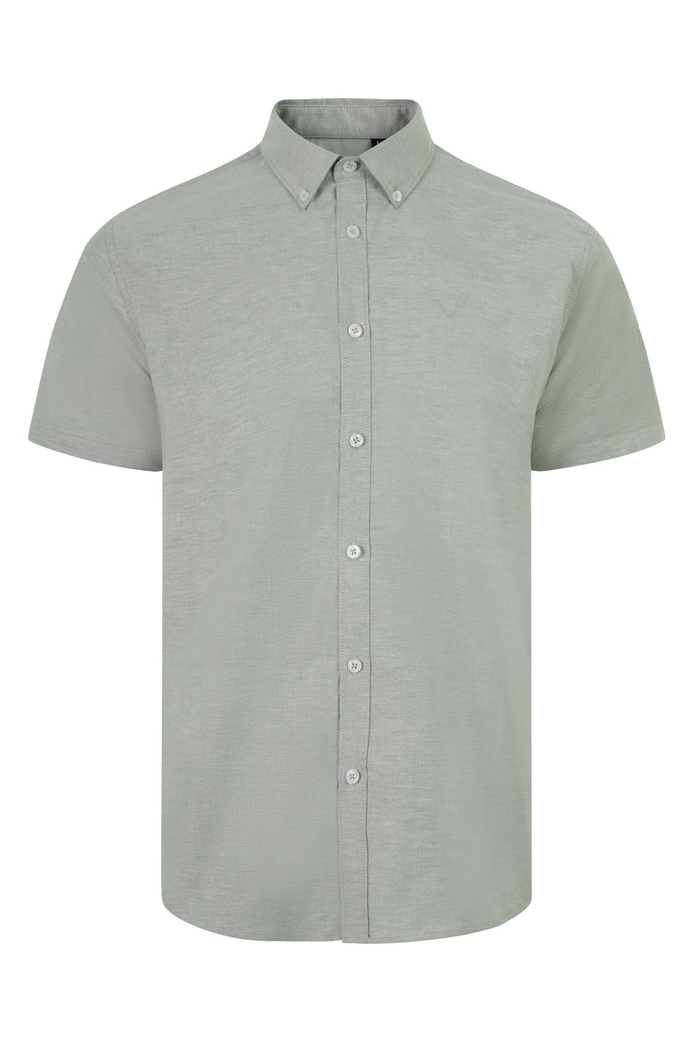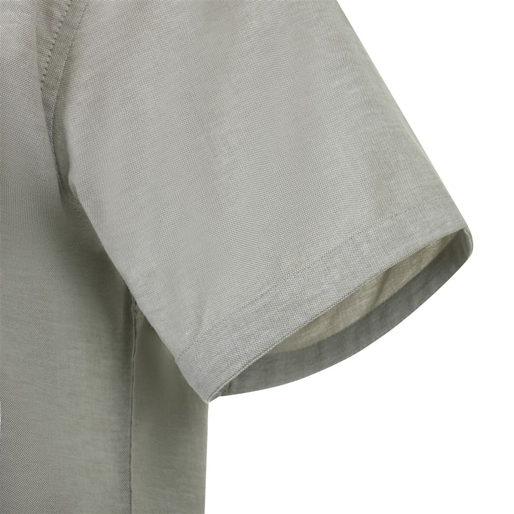 Camisa Oxford Stretch Manga Curta de Homem Fecho central com carcela inglesa e Gola camiseira com botões.