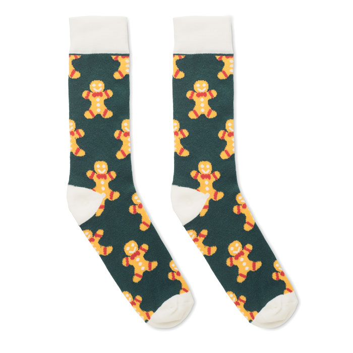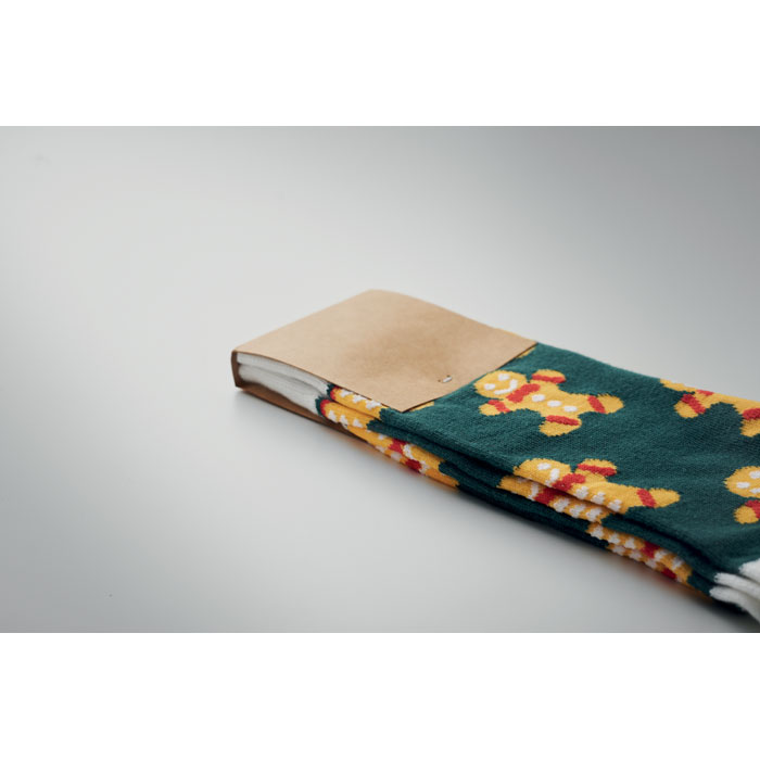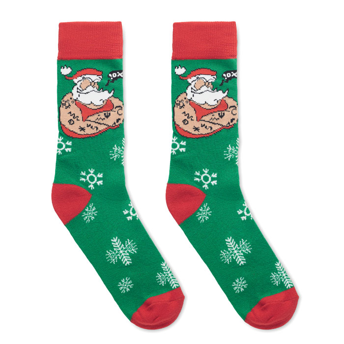 Par de Meias de Natal Joyful L em 75% Algodão, 23% Poliester RPET e 2% Spandex. Apresentado em caixa de oferta. Tamanho L. Toda a gente adora adicionar um pouco mais de alegria e talento à sua roupa com algumas meias temáticas engraçadas ou especiais. Estas meias festivas são um grande presente para qualquer pessoa.