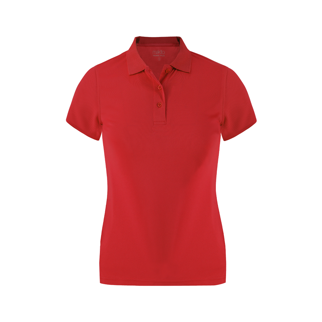 Polo feminino Tecnic Plus ajustado de manga curta, confeccionado em tecido técnico 100% poliéster 180 g/m². Suave, leve e confortável, incorpora tecnologia Cool Dry, que favorece a transpiração e mantém uma sensação fresca e seca durante o uso. Tapeta de três botões tom sobre tom e aberturas laterais.