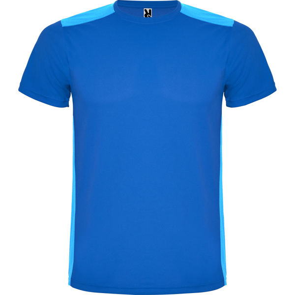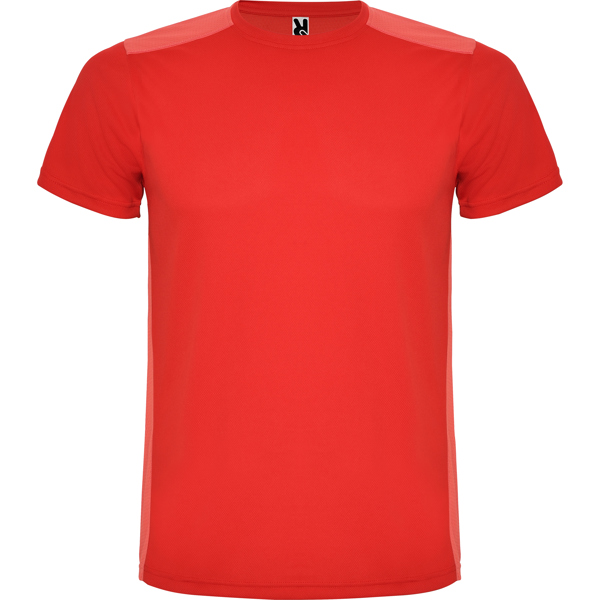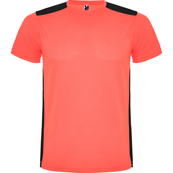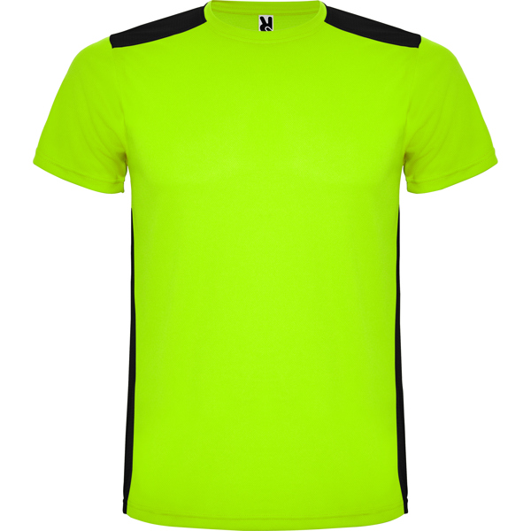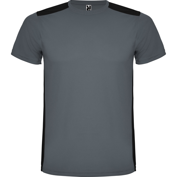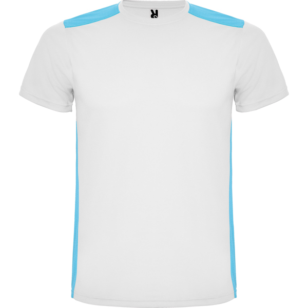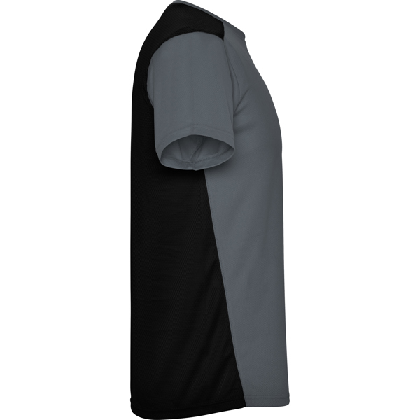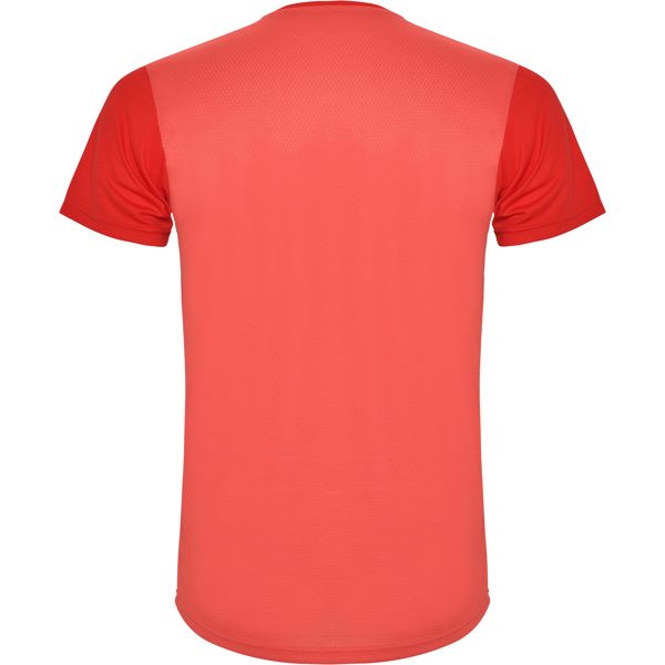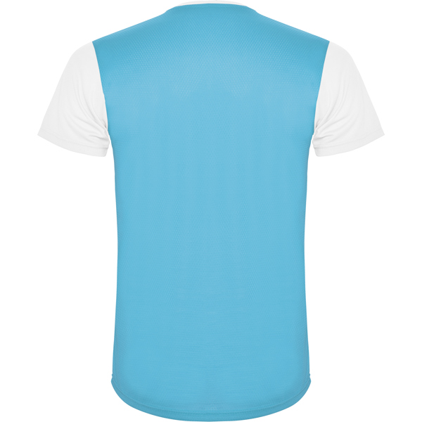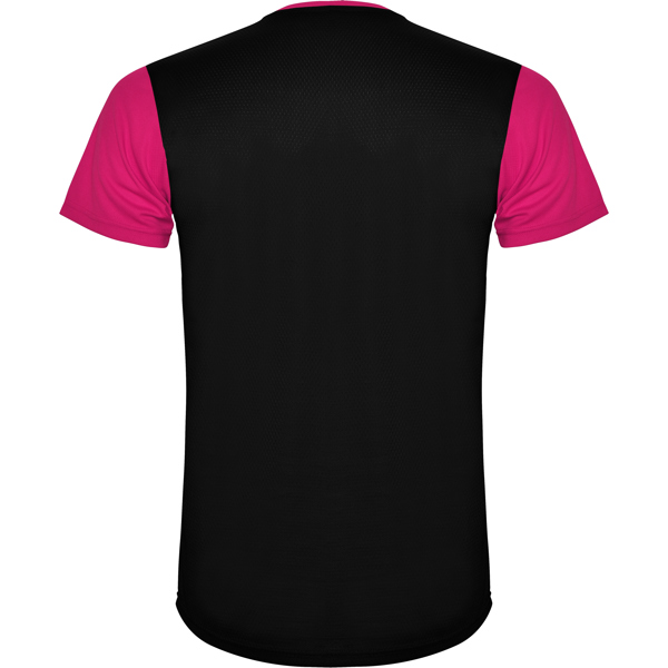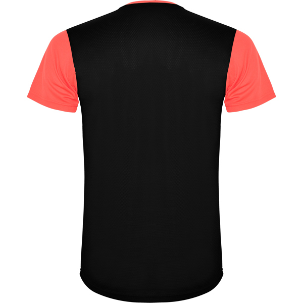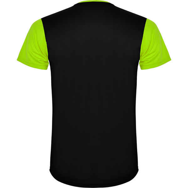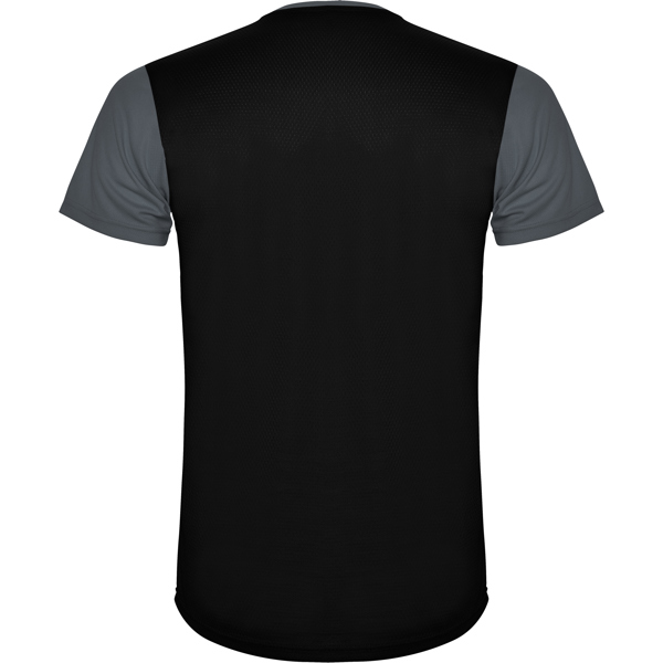 T-shirt Técnica Detroit Gola Redonda. Combinação de Dois Tecidos em Poliéster, nas costas e ombros. Tecido principal frontal “Bird’s Eye” e tecido transpirável “Rede 3D” nas costas. Tecido preparado para a absorção de humidade. Ponto overloque (zig zag) nos ombros e costuras posteriores laterais. Molde das costas ligeiramente mais comprido que a dianteira.